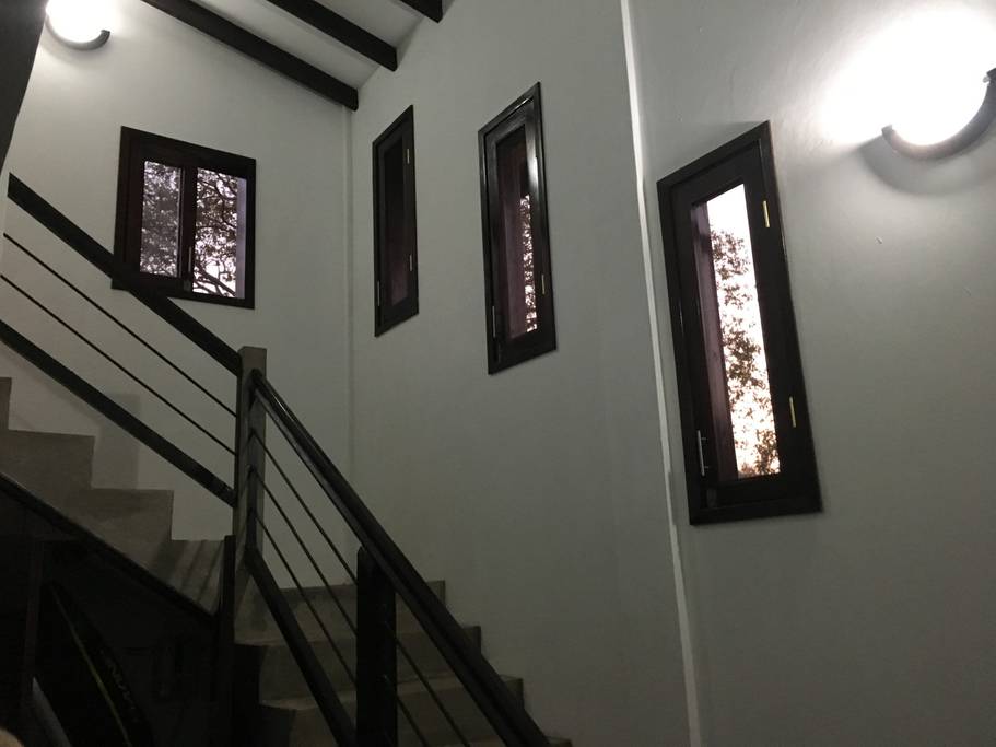 Two story house with extended outdoor living area downstairs. With two bedrooms and baths upstairs it featured about 1800 sqft. of low maintenance living. Built with an engineered concrete and steel structure, it will be finished with plantation teak and salvaged cedar for doors and kitchen cabinets to soften the concrete work. When building in Nicaragua it is important to source sustainable wood as many local building companies use illegally harvested unsustainable wood. The galvanized steel beams in the vented roof will be hidden by tongue and groove teak and an outdoor shower is lined by local flagstone laid by our craftsmen.