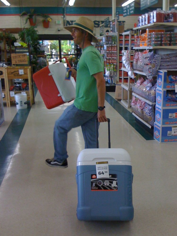 To keep the wort at a cool 72 degrees we needed a cooler that would comfortably fit a carboy. Luckily we had picked one up on our last trip to the US. It is the perfect size!