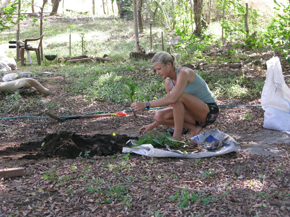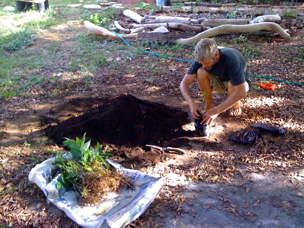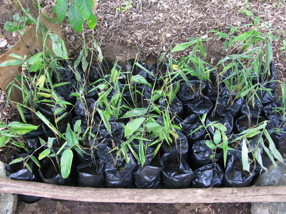We received instructions to plant the seedlings in plastic grow-bags using 1/3 hummus,1/3 “tierra-negra” (black earth) and 1/3 local soil.  I later found out that guadua needs drainage and it is better to also mix in clean sand (at a 1/4 to 1/3 ratio).