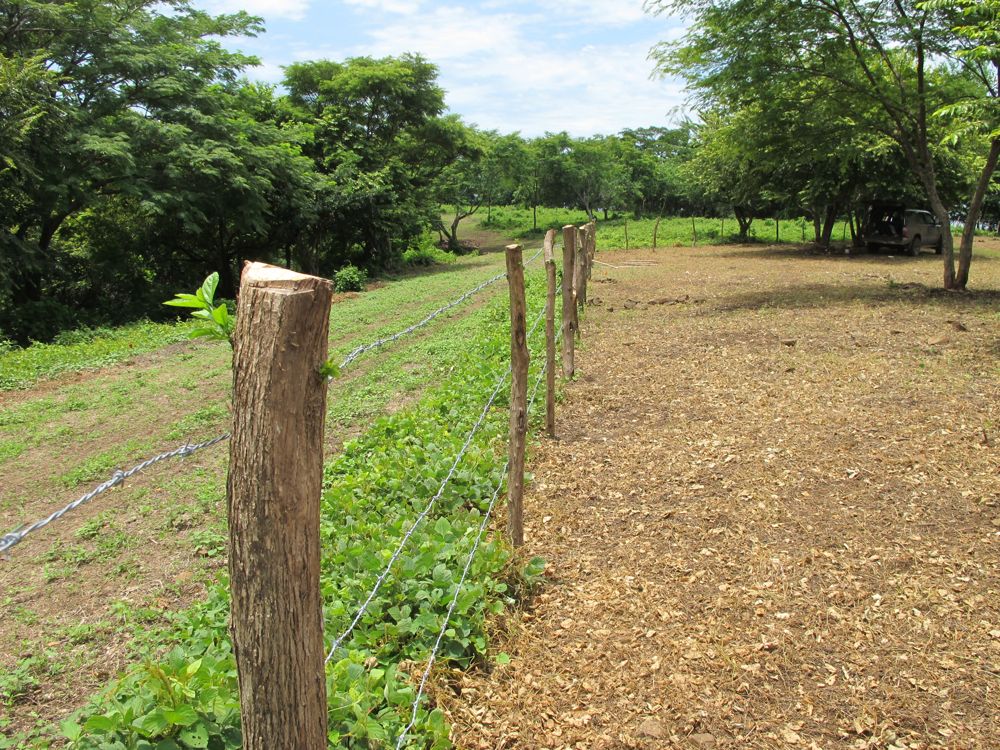 There are two choices for types of posts that will sprout and become a living fence – tiguilote and jocote. The good thing about having a fence that grows is that it is actually putting down roots to help hold itself in place and will grow branches to help with shade. Although jocote has fruit that is slightly more delicious, we prefer tiguilote since it’s a bit more solid. Each fence post usually costs about 20 cordobas to buy (just under $1 US), but we were able to find all of our posts on the property. We bought three rolls of barbed wire, and had the caretaker get to work. It took about a week for him to cut the posts, install them in a nice straight line, and then string the barbed wire.