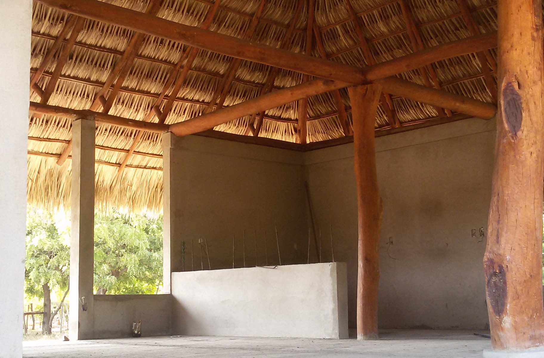 We left space next to the entry for a teak deck that leads to an attached pool (phase II). The bedrooms will have double doors to open onto the common area and the walls along with the kitchen back wall enclose about half the rancho, the rest being open to allow the cooling onshore sea breezes to sweep through. We are doing this project piece by piece as the lads save up funds. Its looking good so far.