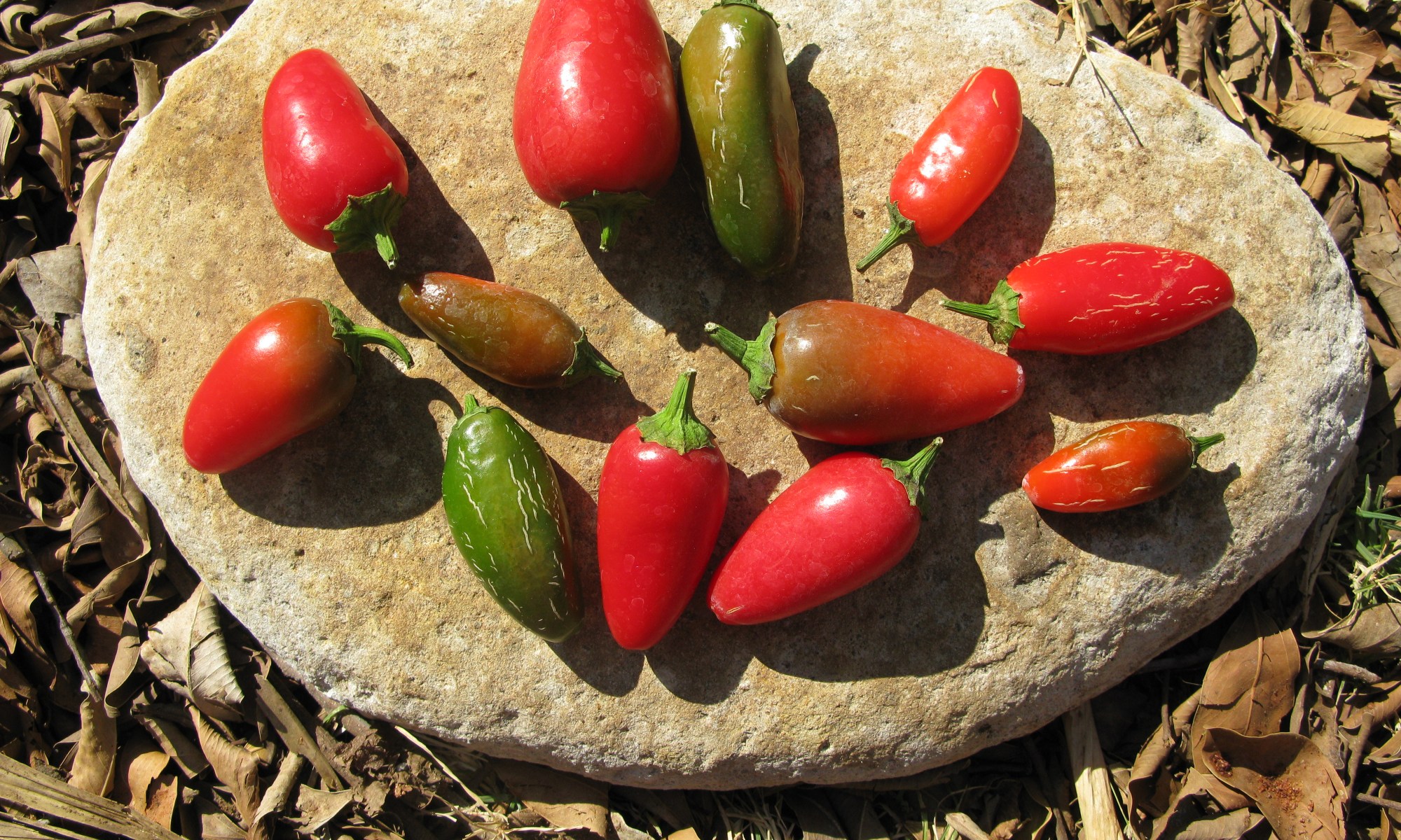 We started planting the garden in late October, 2011- lots of  chillies (habanero, jalapeno, arbol, New Mex, serrano and others), various greens, tomatoes, Thai basil, lemongrass, dill, tea tree, sunflowers and a bunch of randoms like purslane and indigo.  Some things never sprouted at all, some sprouted and died soon after, and some flourished.  Holly's …